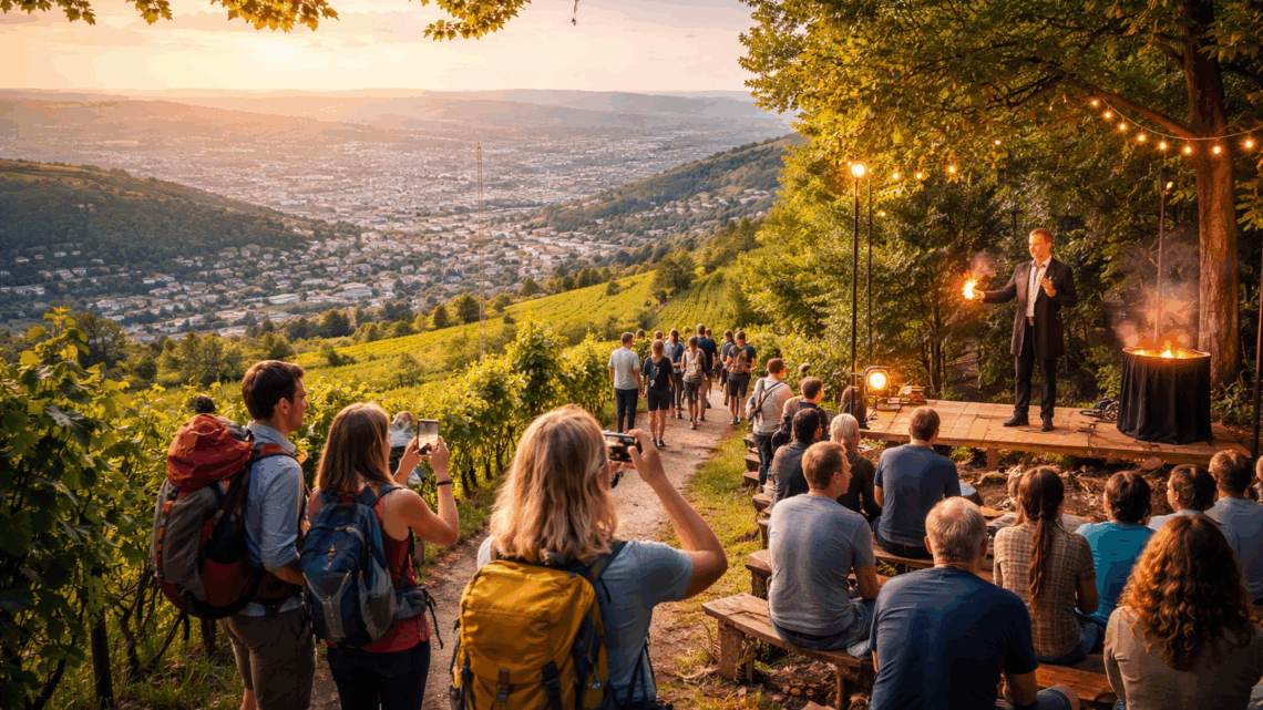 Immer häufiger werden in Stuttgart Outdoor-Formate entwickelt, bei denen eine Wanderung bewusst auf einen magischen Höhepunkt zuläuft. Das kann eine kurze Zaubershow an einem Aussichtspunkt sein oder ein magischer Abschluss nach der Einkehr.
